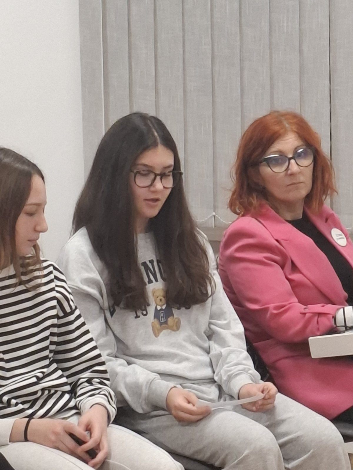 Nakon uvodnog predstavljanja, naša gošća je preuzela glavnu riječ i započela ugodan i inspirativan razgovor s publikom, a pitanja su joj postavljali učenici iz novinarske grupe i Kluba ljubitelja knjige. Postavljali su pitanja o knjigama, temama o kojima autorica govori u svojim djelima te ih je zanimalo i njeno čitalačko putovanje. Sama autorica je kroz čitavo gostovanje naglašavala važnost tema kojima se bavi u svojim romanima – depresija, gubitak teškoće odrastanja i drugih važnih životnih izazova te je svima rado preporučila svoju knjigu ”Ljeto na jezeru Čiću.”