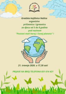 21. travnja 2026. organiziramo pričaonicu i igraonicu povodom obilježavanja Dana planeta Zemlje. Namijenjena je za djecu uzrasta od pet do osam