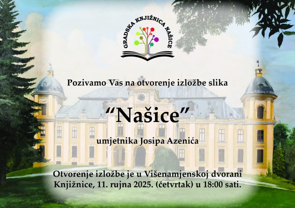 Pozivamo vas na otvorenje samostalne izložbe slika gospodina Josipa Azenića pod nazivom ”Našice”.