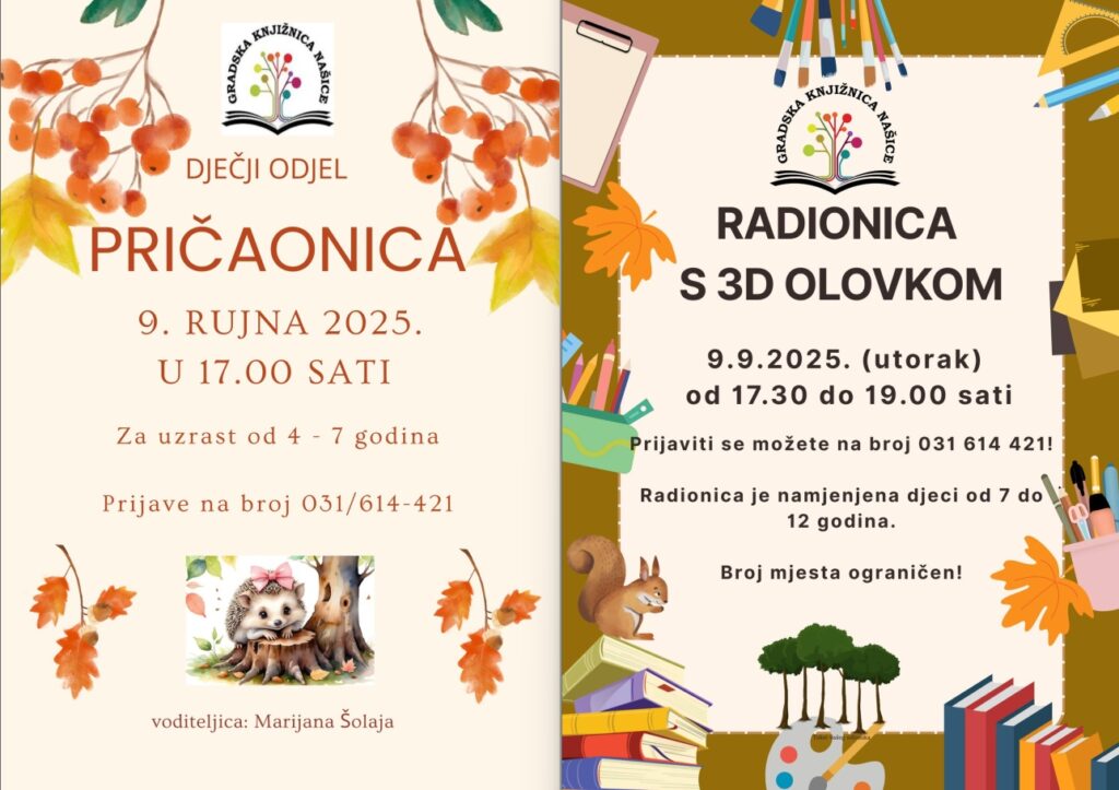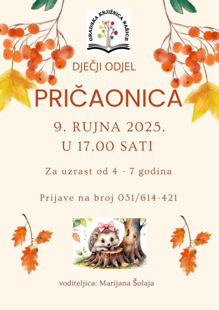 🦔 🍁Pričaonica na dječjem odjelu – 9.9.2025. u 17.00 sati za djecu od 4-7 godina