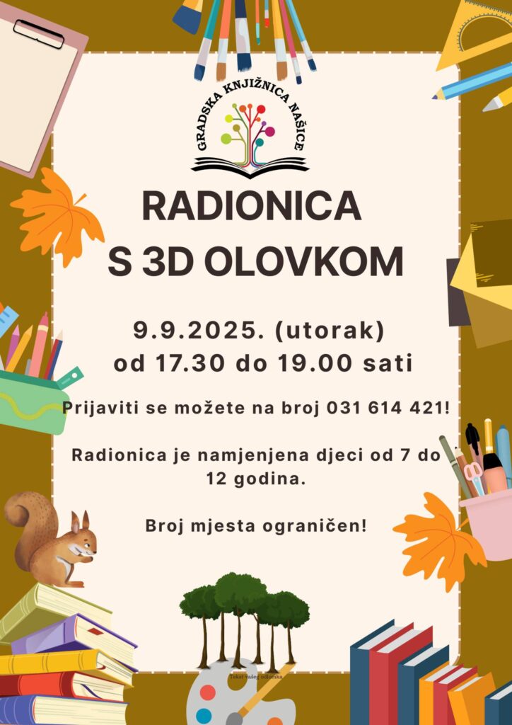 🐿🍂 Radionica s 3D olovkom – 9.9.2025. od 17.30 do 19.00 sati za djecu od 7 do 12 godina.