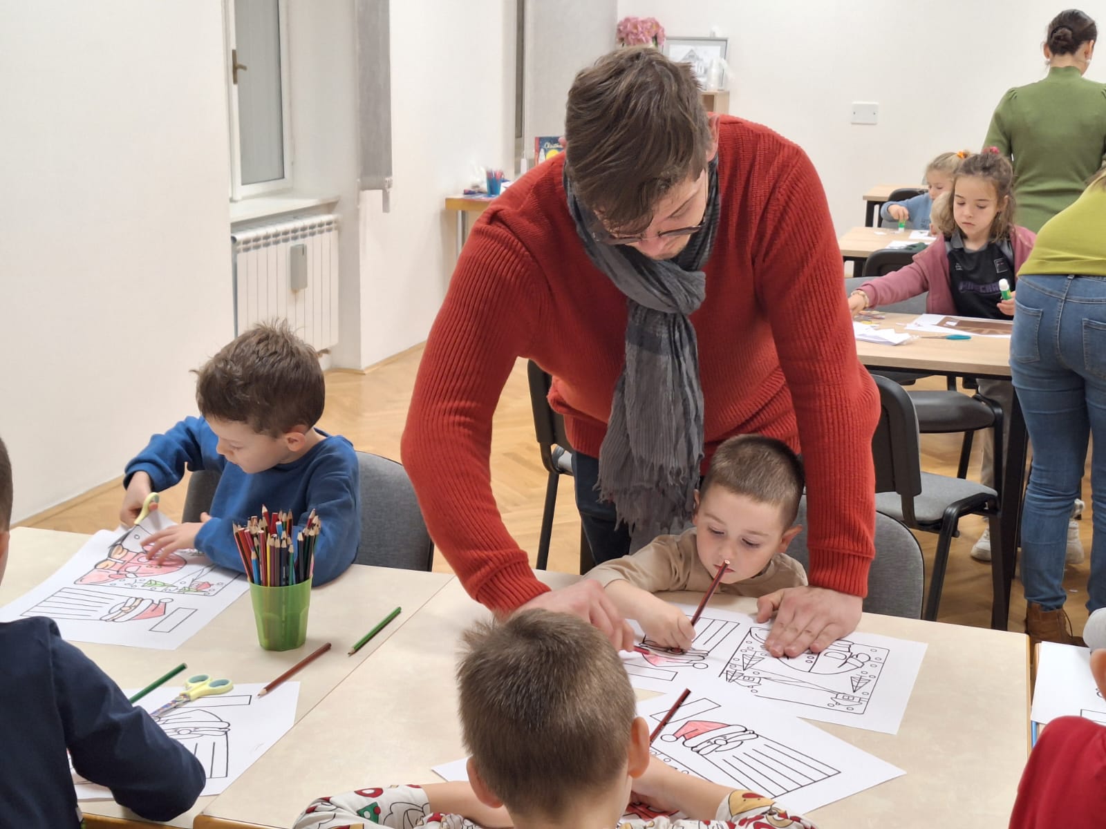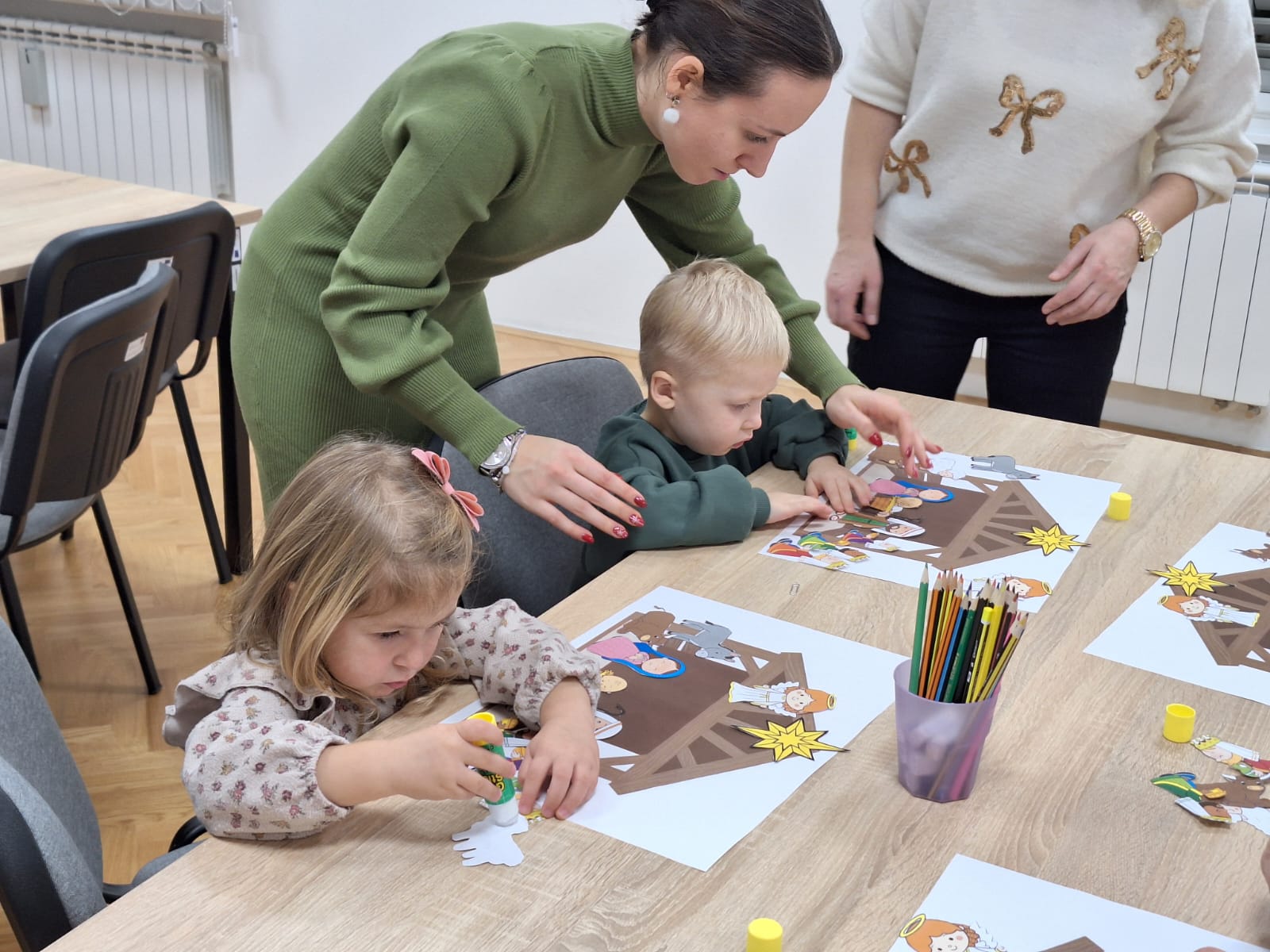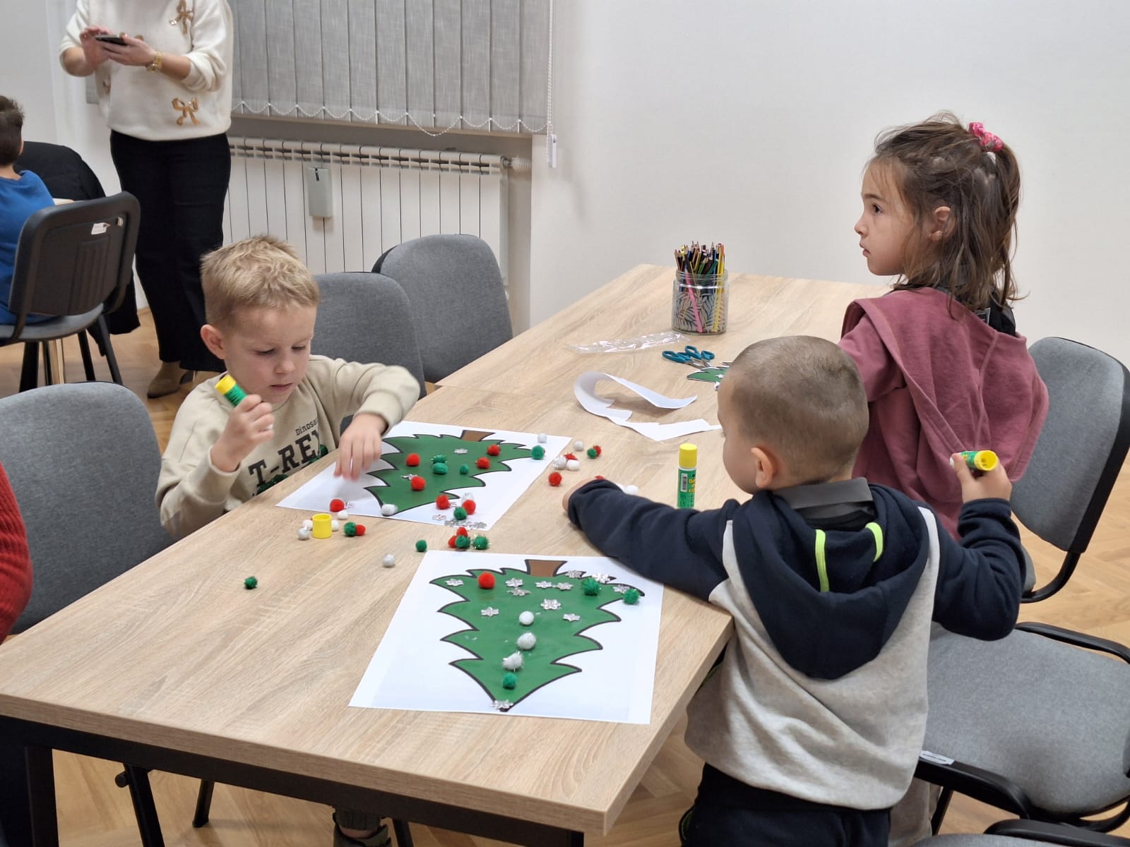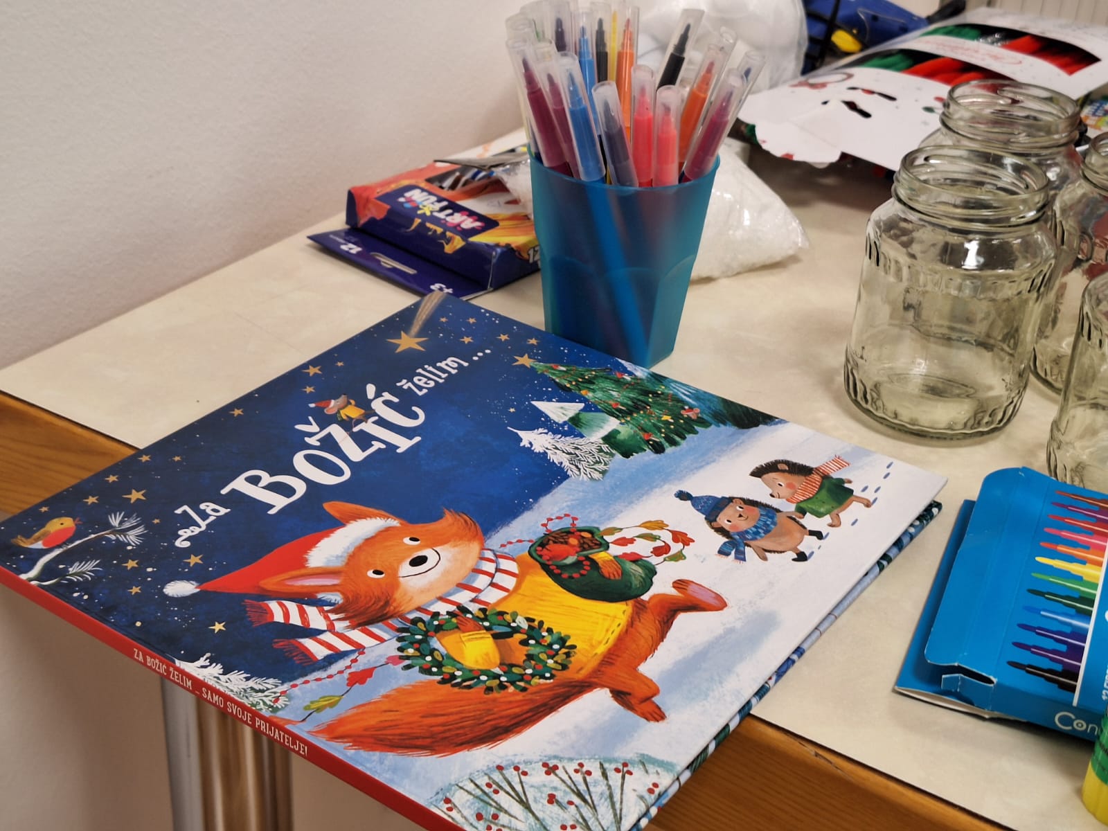 Naši mali polaznici radionice prvo su poslušali priču na temu Božića. Nakon razgovora o pročitanoj priči, polaznici radionice sudjelovali su u izradi raznih božićnih ukrasa od papira i drugih materijala. Uz osmijehe i božićne pjesme radionica je provedena u pravom božićnom ozračju.