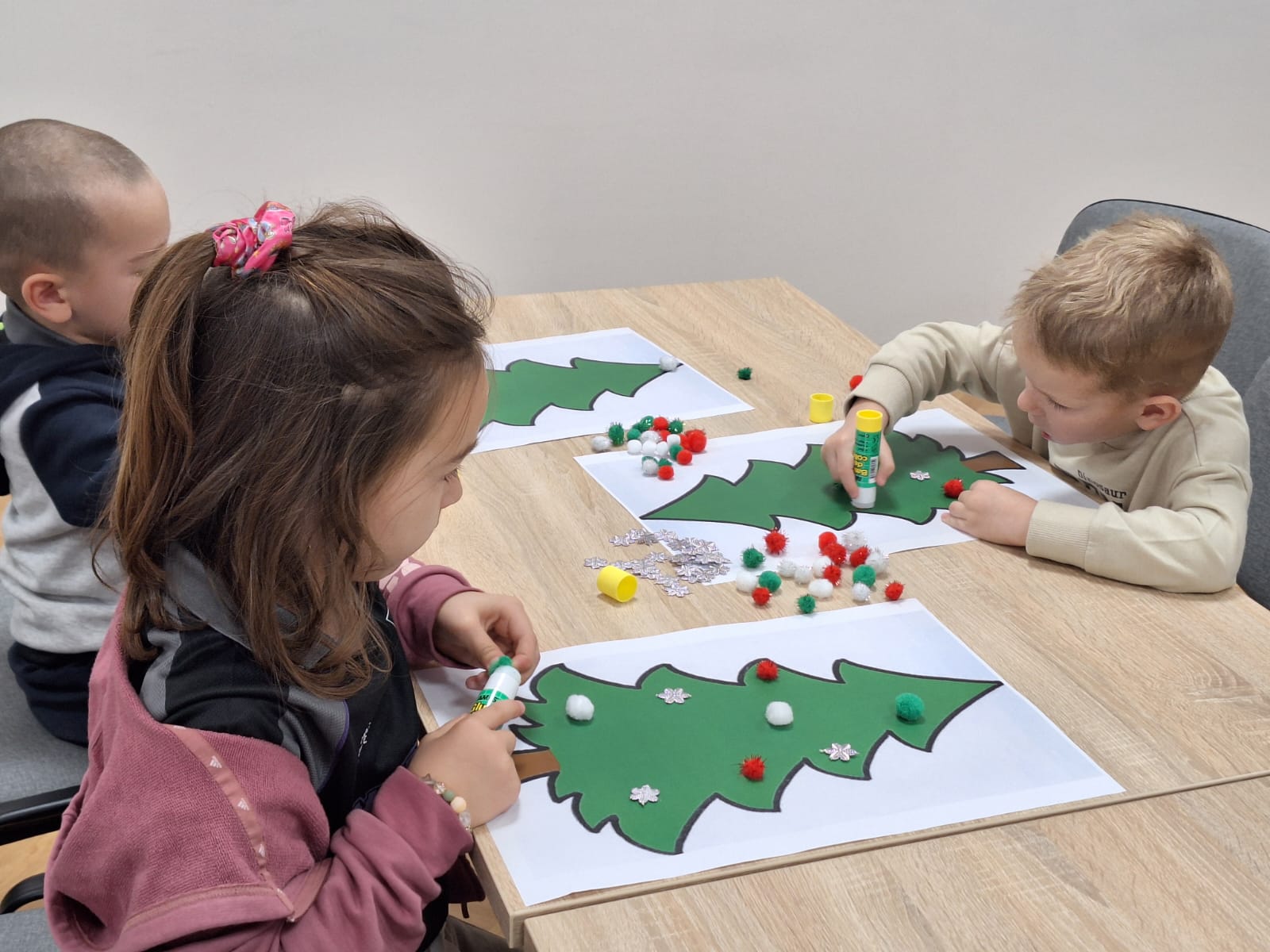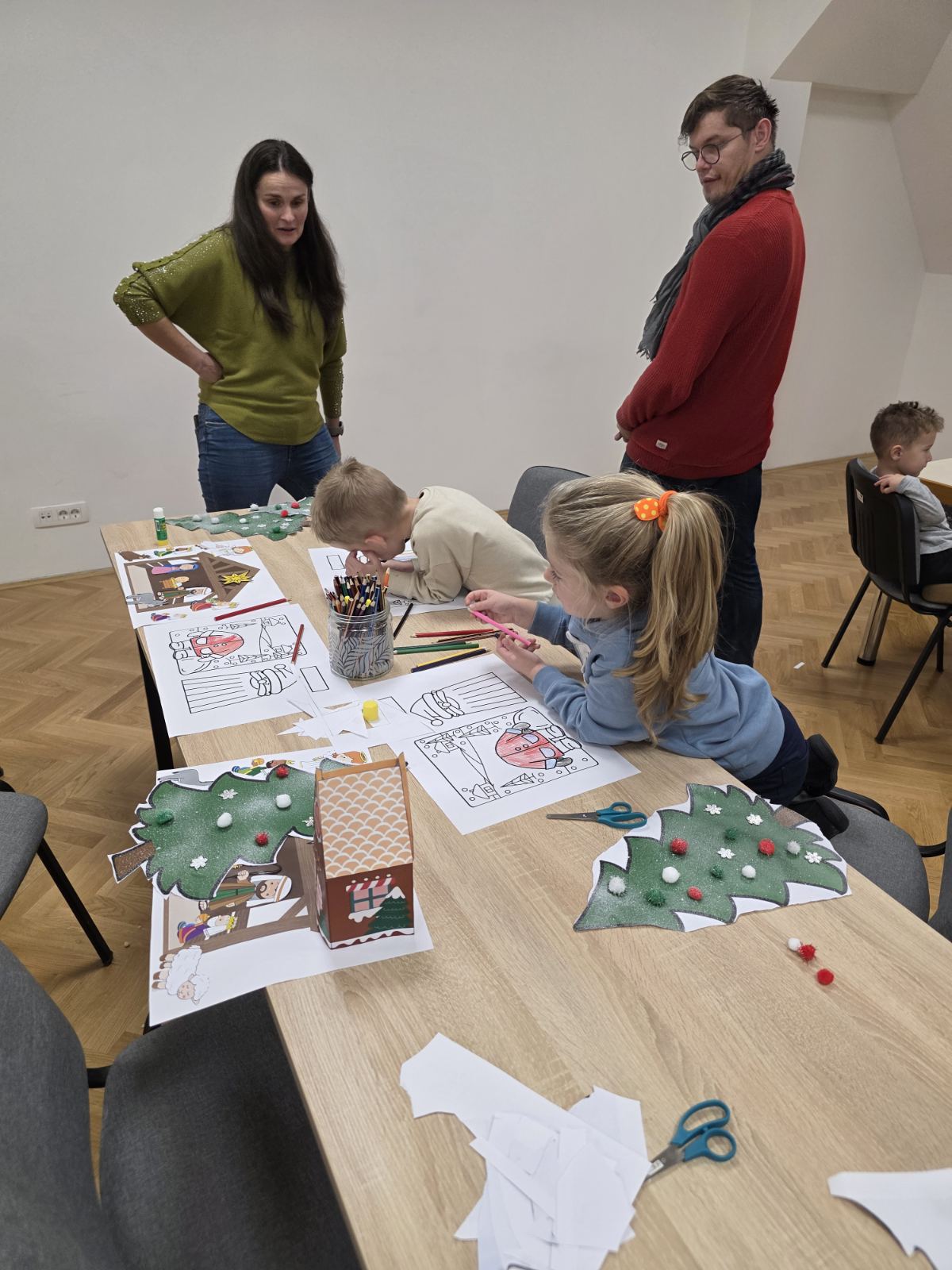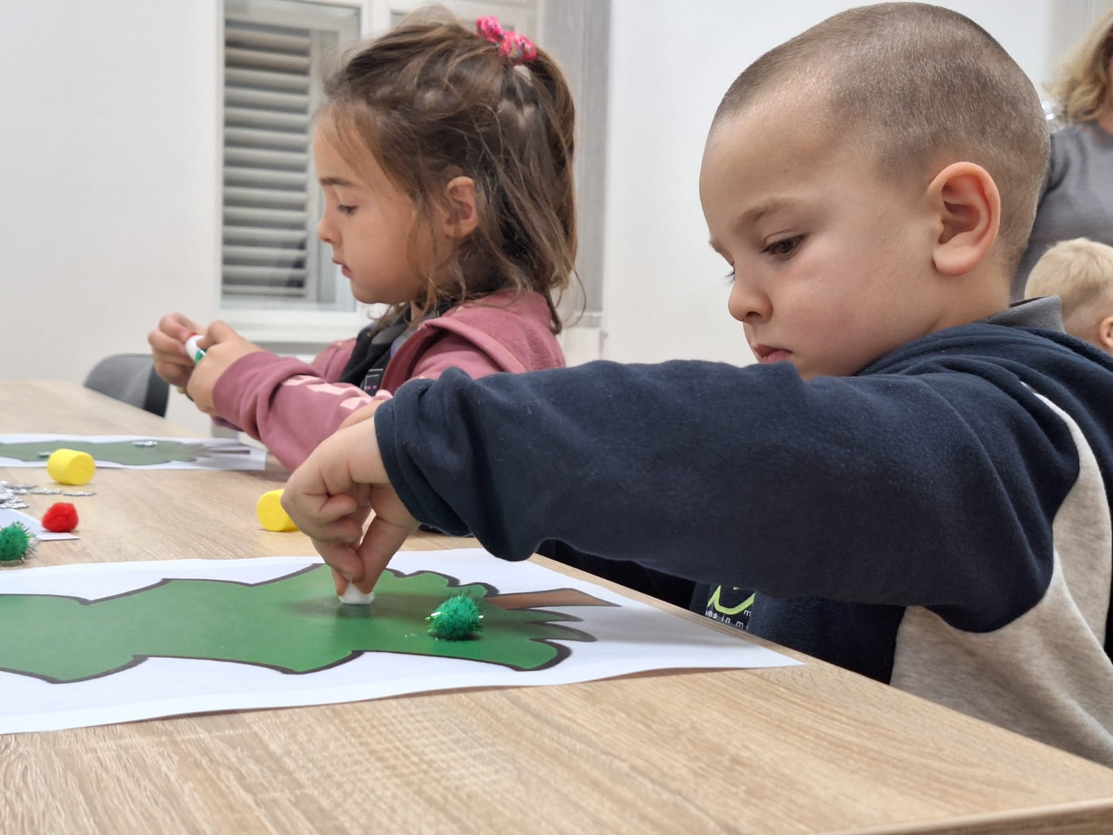 Naši mali polaznici radionice prvo su poslušali priču na temu Božića. Nakon razgovora o pročitanoj priči, polaznici radionice sudjelovali su u izradi raznih božićnih ukrasa od papira i drugih materijala. Uz osmijehe i božićne pjesme radionica je provedena u pravom božićnom ozračju.
