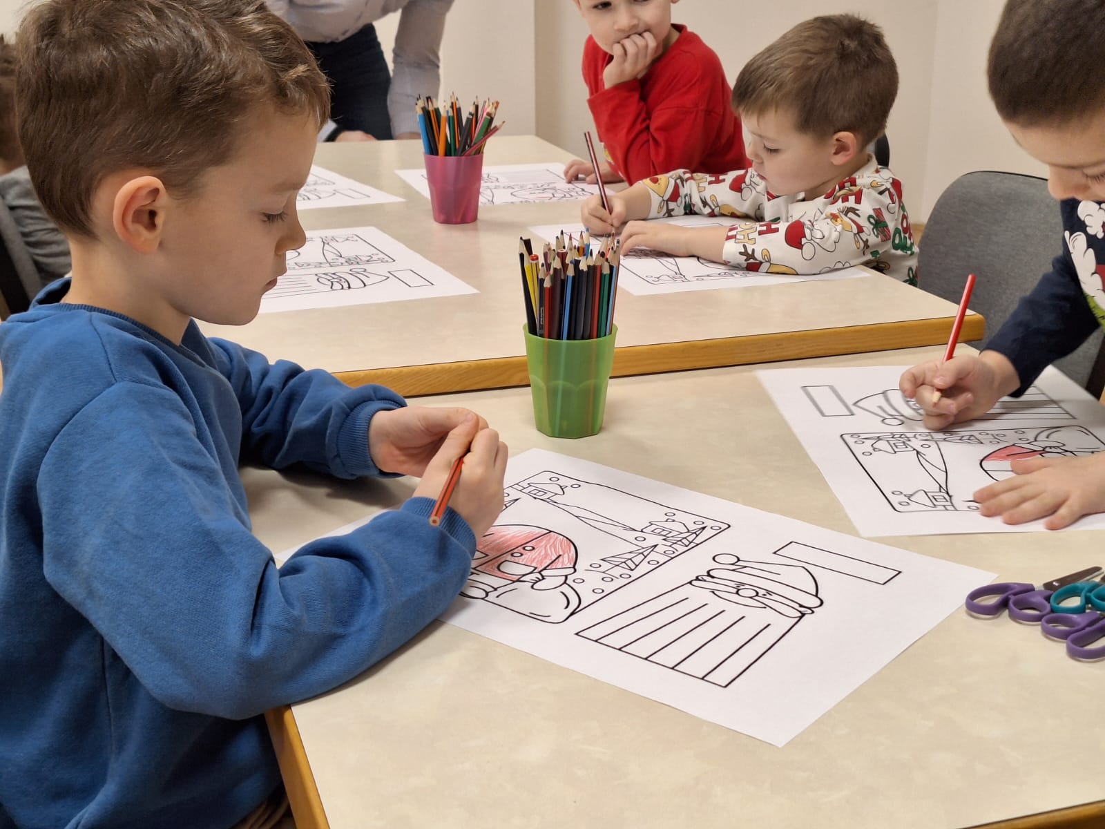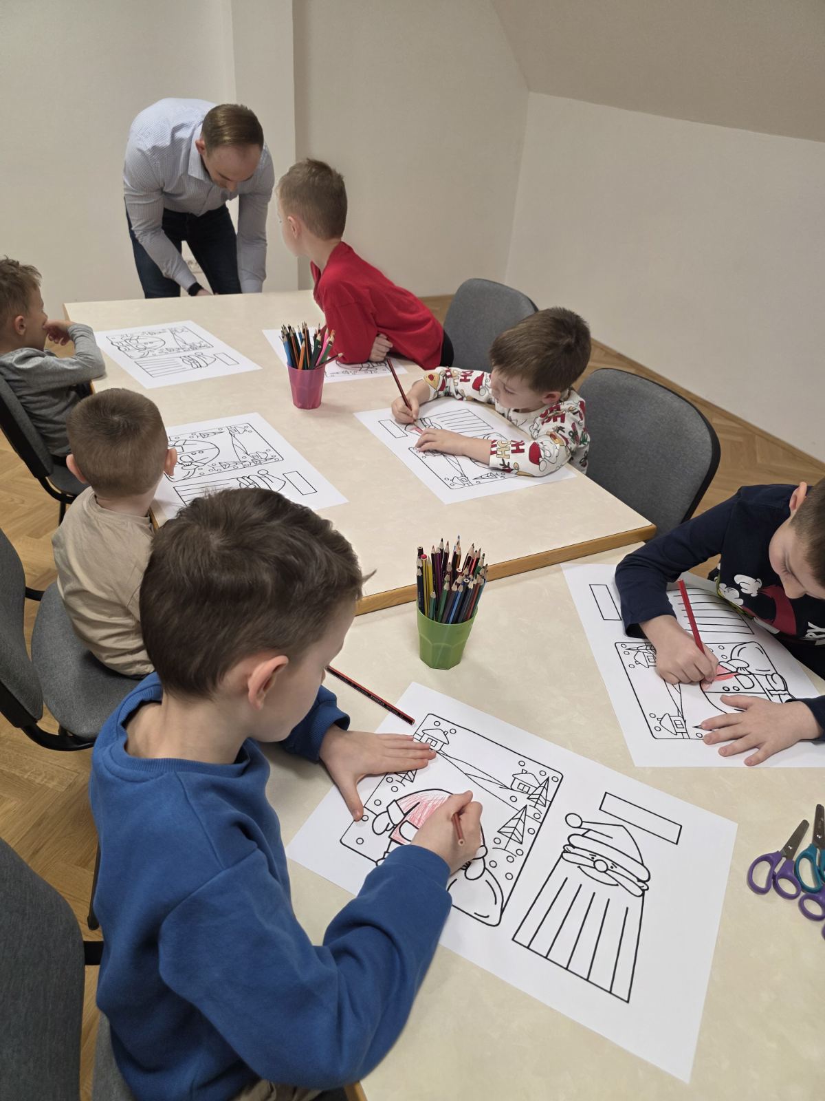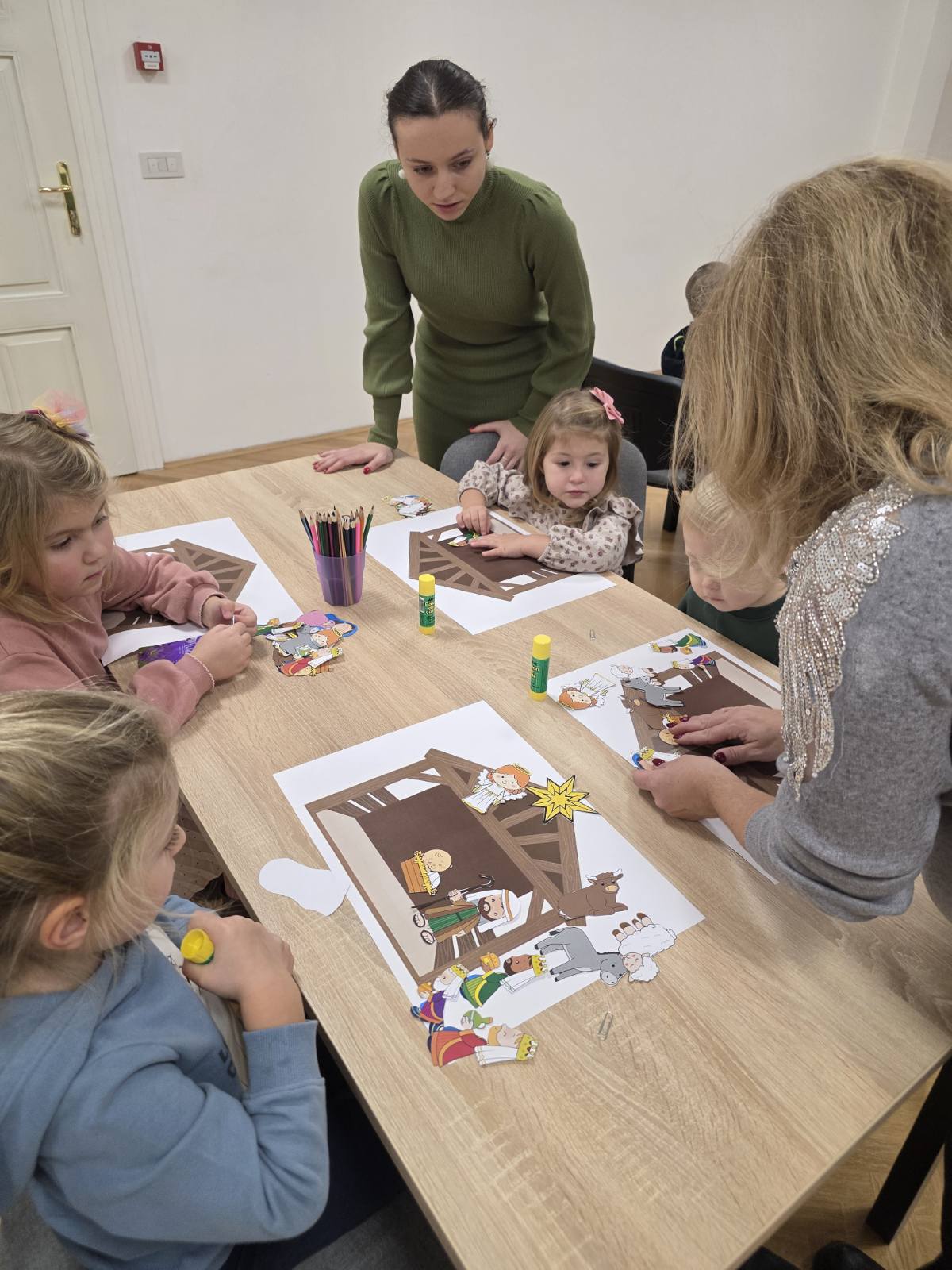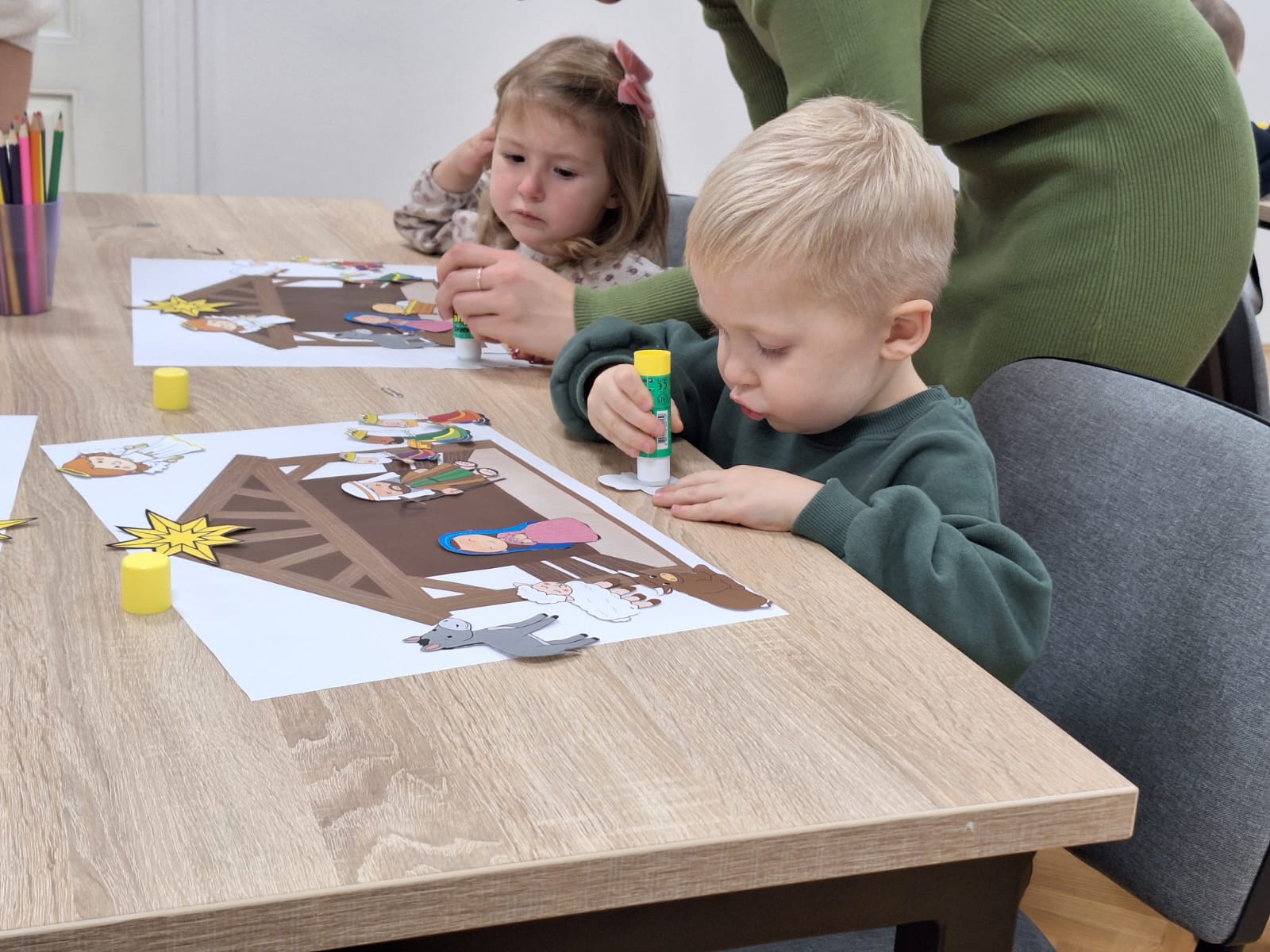 Naši mali polaznici radionice prvo su poslušali priču na temu Božića. Nakon razgovora o pročitanoj priči, polaznici radionice sudjelovali su u izradi raznih božićnih ukrasa od papira i drugih materijala. Uz osmijehe i božićne pjesme radionica je provedena u pravom božićnom ozračju.