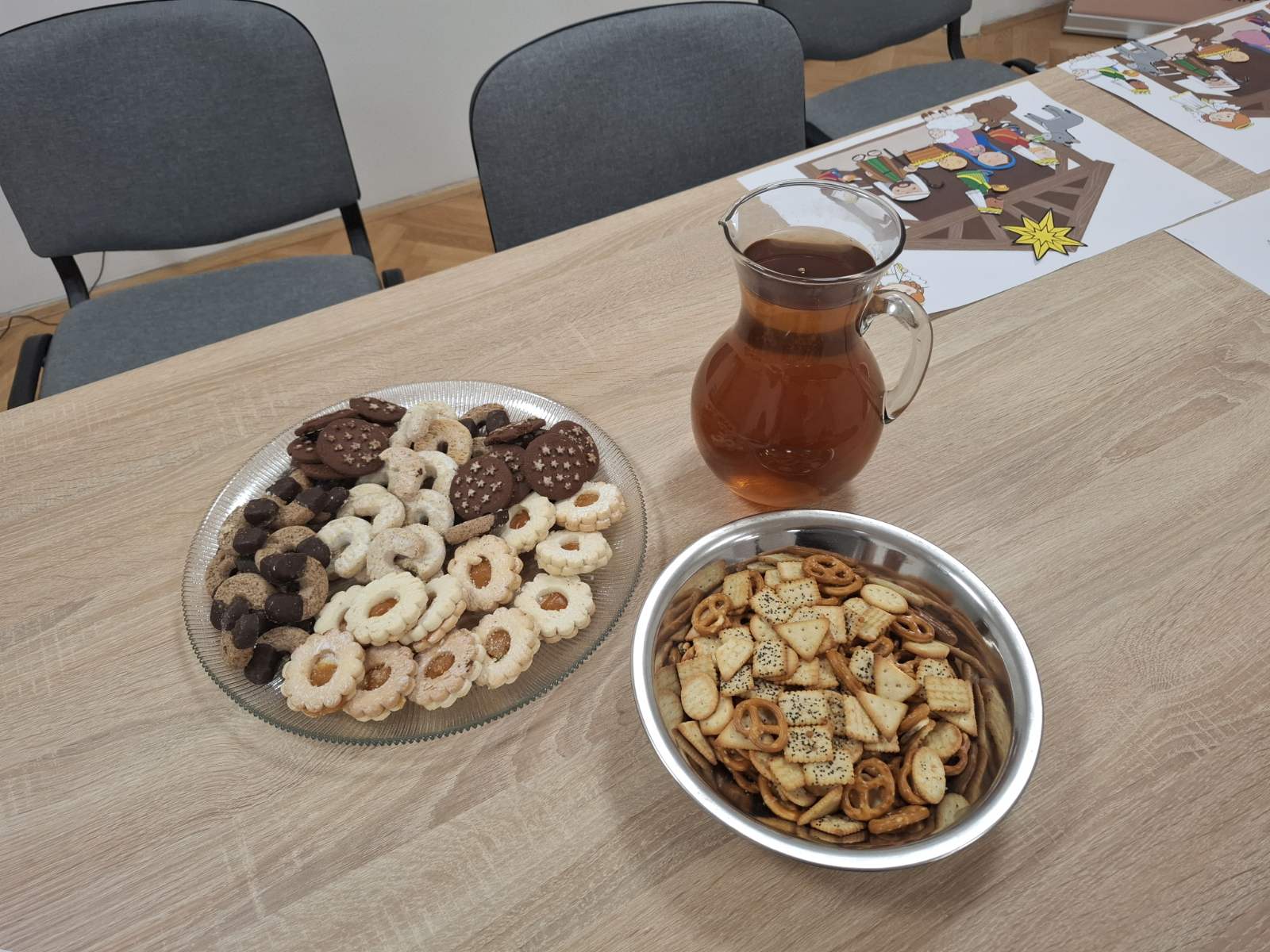 Nakon završenih aktivnosti knjižničarke su djeci pripremili malu okrjepu uz keksiće i